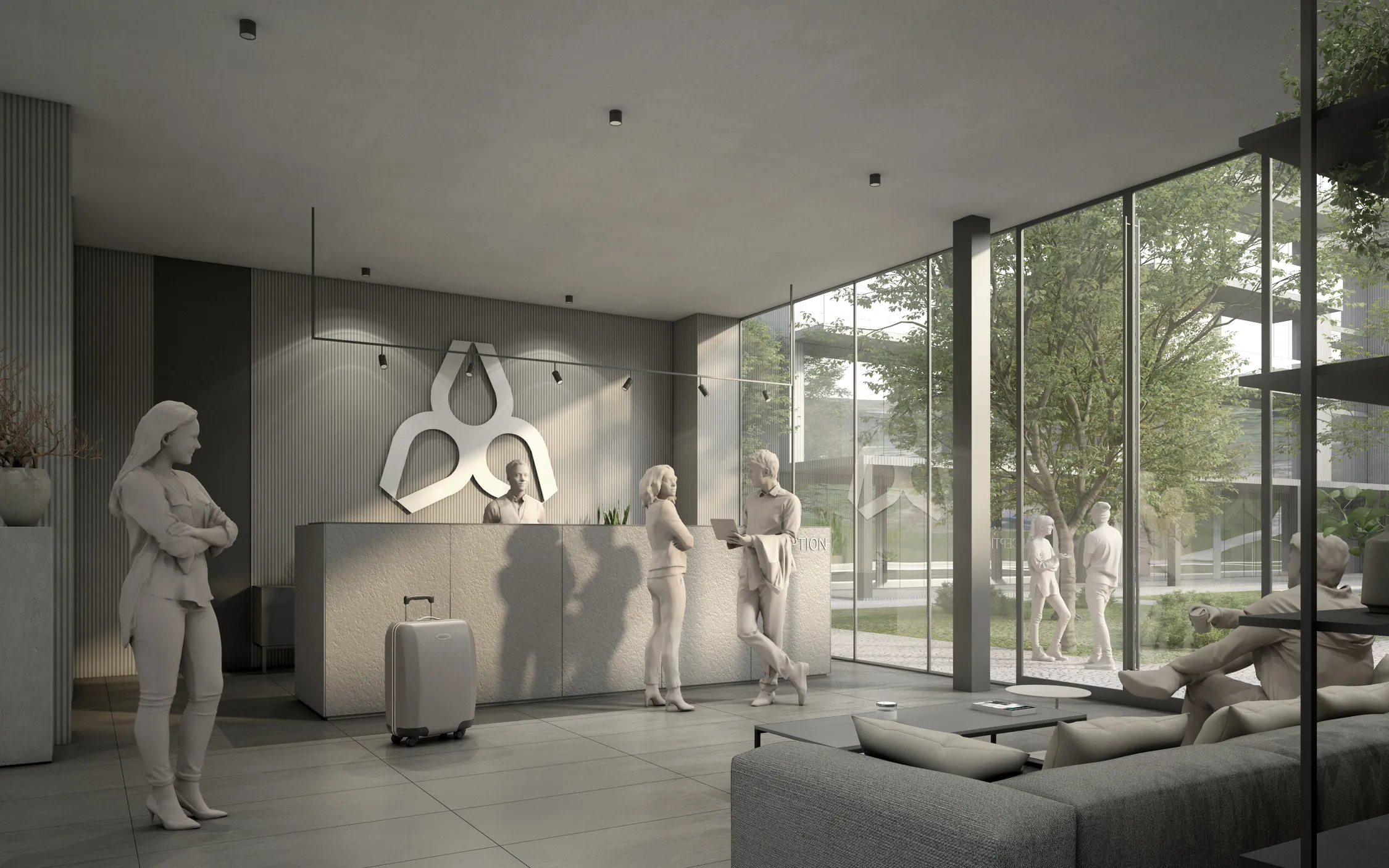 Apartmány doplňuje široká škála služeb – od ordinací přes parkování až po prostory pro volný čas a komunitní život.